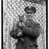 - Photograph shows Benjamin Fink, half-length portrait, standing, facing front, holding Tiger, referred to as "Tige", the White House cat.