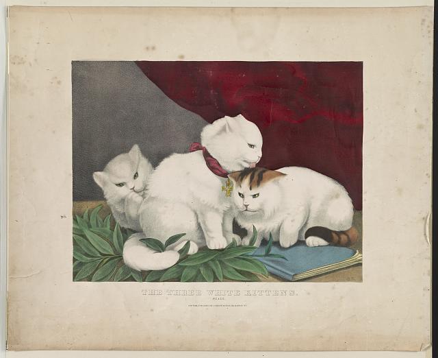 - Library of Congress Digital Collection, Hand-Colored, Lithographs, Cats, Call no. PGA - Currier & Ives--Three white kittens: peace (B size) [P&P]
